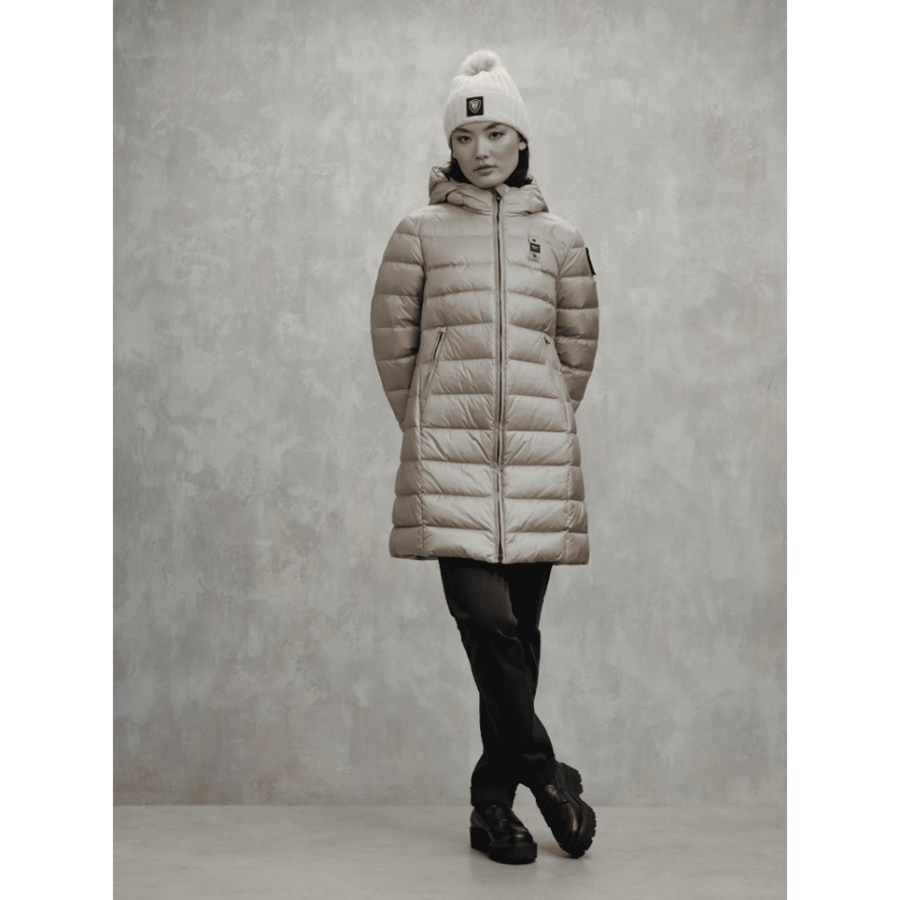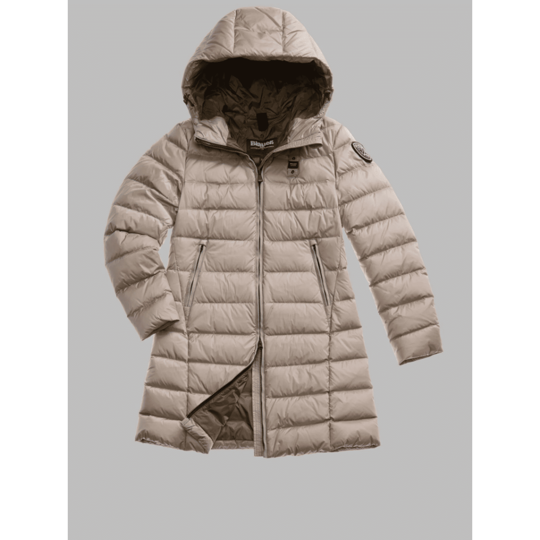 Piumino lungo trapuntato a righe orizzontali ed interno in contrasto colore. Capo con imbottitura naturale morbida, calda e non ingombrante, dai colori fashion e dal taglio che risalta il punto vita. • Cappuccio fisso con coulisse • Foderato in contrasto colore • Imbottito piuma 90/10 gr.215 • Chiusura con zip • Copri cursore sul collo • Tasche con zip • Tasche interne con velcro e zip • Patch glitterato e passante con logo