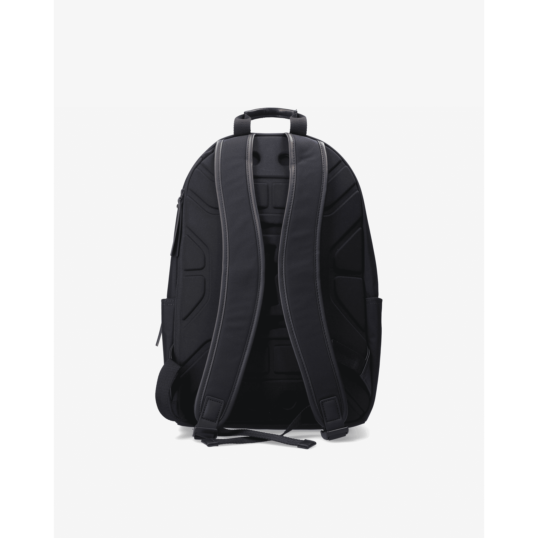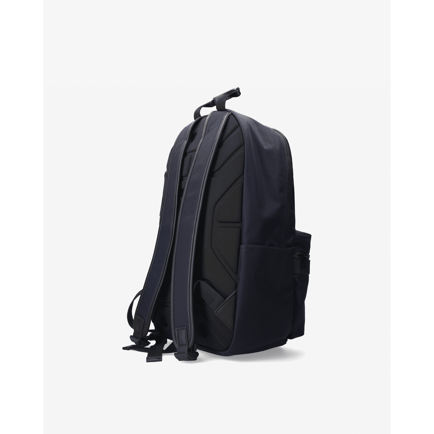 Un modello capiente e versatile in gabardine di nylon di prima qualità con trattamento antisfilacciamento e idrorepellente. Spallacci imbottiti in EVA per un maggiore comfort. Tasche frontali impermeabili con finiture in pelle di vitello e chiusure in metallo opaco. Fodera interna in gabardine logata Zip metal lux nera Tasca laterale Riporto in pelle Maniglia foderata in pelle Spallacci regolabili Tiranti in gomma Placca logata in nero opaco Tasca laterale esterna porta pc